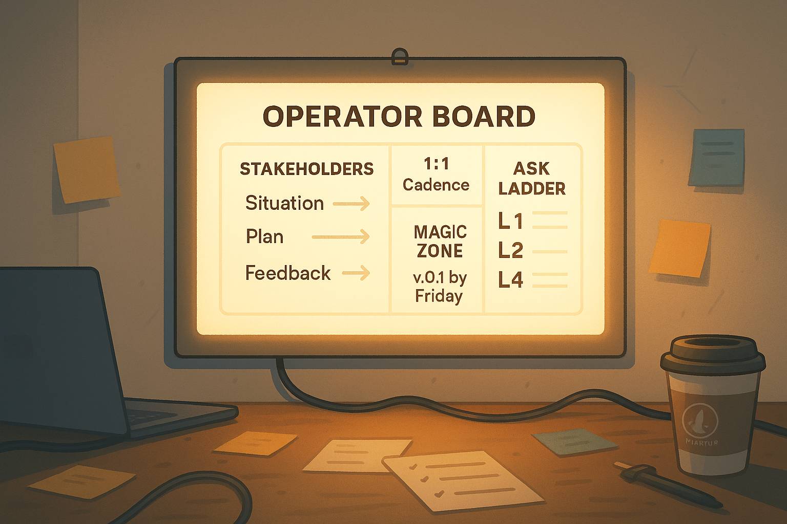 2) Run 1:1s That Produce Decisions (and Development)This next tip come from the fact that micromanagement eased when I front-loaded decisions and made my growth ask a non negotiable of every 1:1. A 1:1 without structure risks just becoming a status/update chat. Flip that with a 1:1 with structure and you can turn them into a decision machine and career accelerator. What to do:Send a pre meeting note 2–4 hours before covering: Today’s Plan, Priorities, Problems. Then, time-box the meeting: